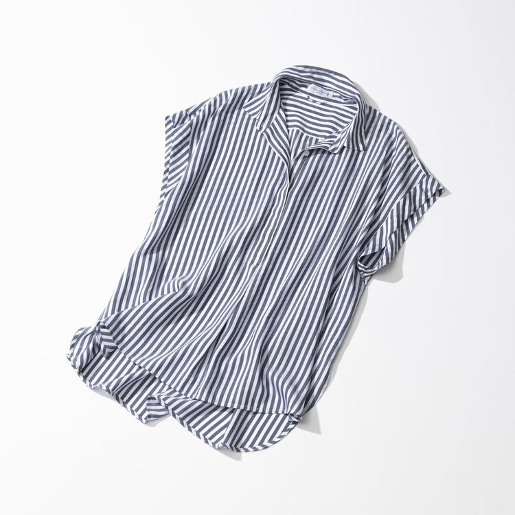 シルクのような滑らかな素材感をレーヨンとポリエステルの混紡で表現したイージーケアのサマーシャツ。隠しボタンなので柄の邪魔をせず、すっきりとクリーンなストライプが涼やかな一枚。ドロップショルダーからの生地のなりゆきで、こなれ感のある袖の形が自然に決まります。色違いの無地で明るいイエローとグリーンも。